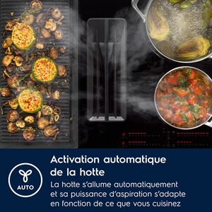 7724500Cette table de cuisson induction Electrolux KCC73443 combine 4 foyers induction et une hotte intégrée.